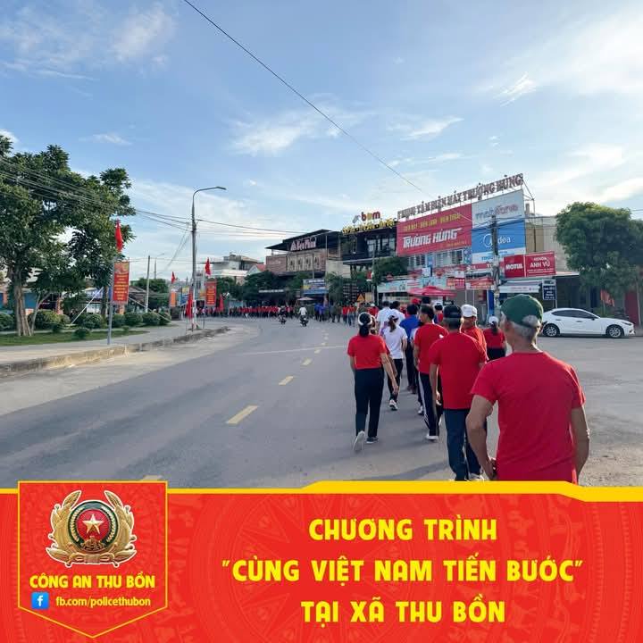 Nhân dịp kỷ niệm 80 năm Cách mạng Tháng Tám và Quốc khánh 2/9; 80 năm Ngày Truyền thống Công an nhân dân (19/8/1945-19/8/2025). Tại xã Thu Bồn, vào sáng ngày 16/8/2025, Công an xã tham mưu Đảng ủy - UBND xã tổ chức chương trình "Cùng Việt Nam tiến bước" với các nội dung: Lễ chào cờ (theo khung giờ Lễ thượng cờ Quốc gia tại Lăng Chủ tịch Hồ Chí Minh) và tổ chức đi bộ tuần hành trên các tuyến đường chính của xã với mục tiêu lan tỏa thông điệp “1 tỷ bước chân tiến vào kỷ nguyên mới”.