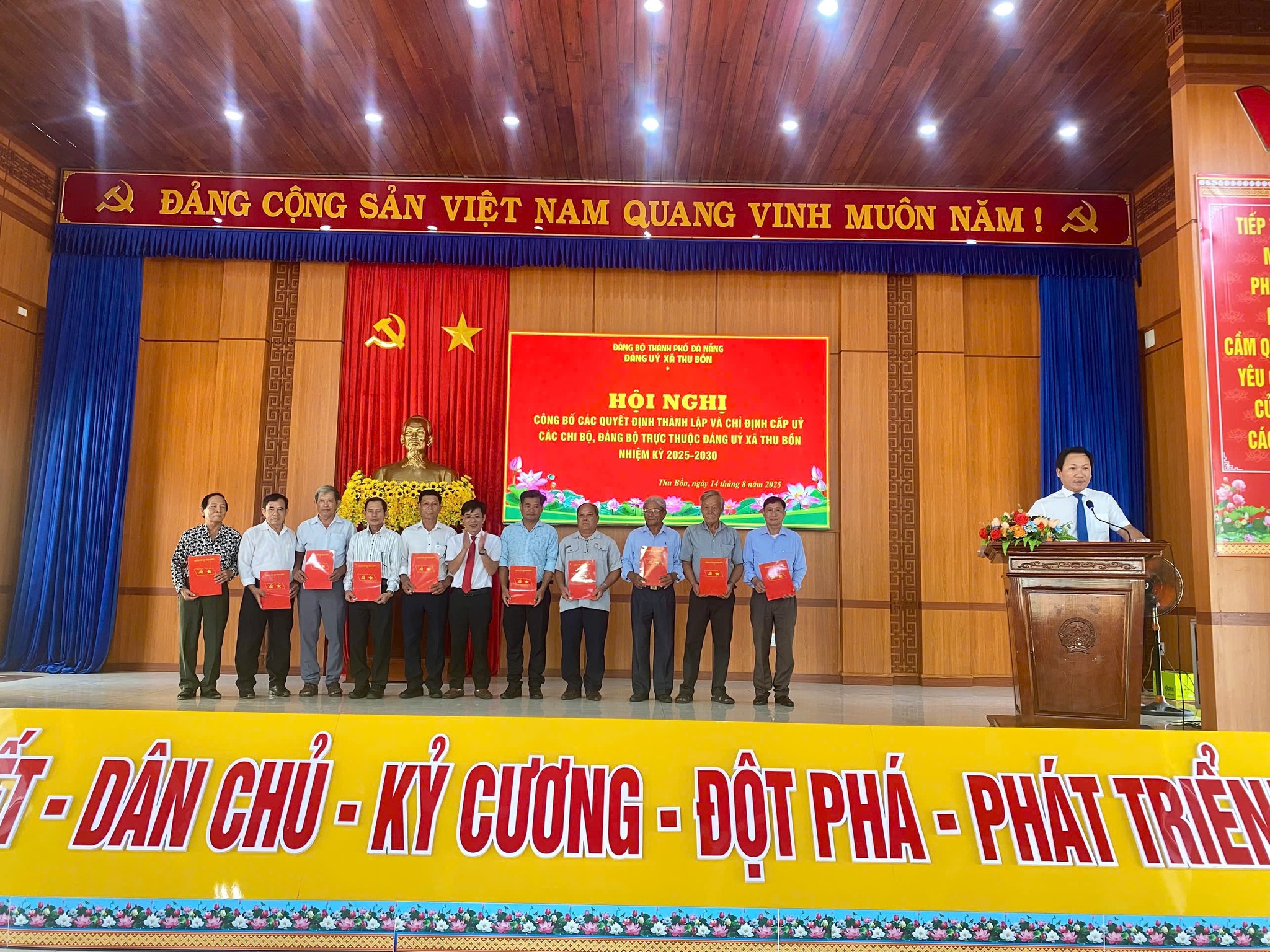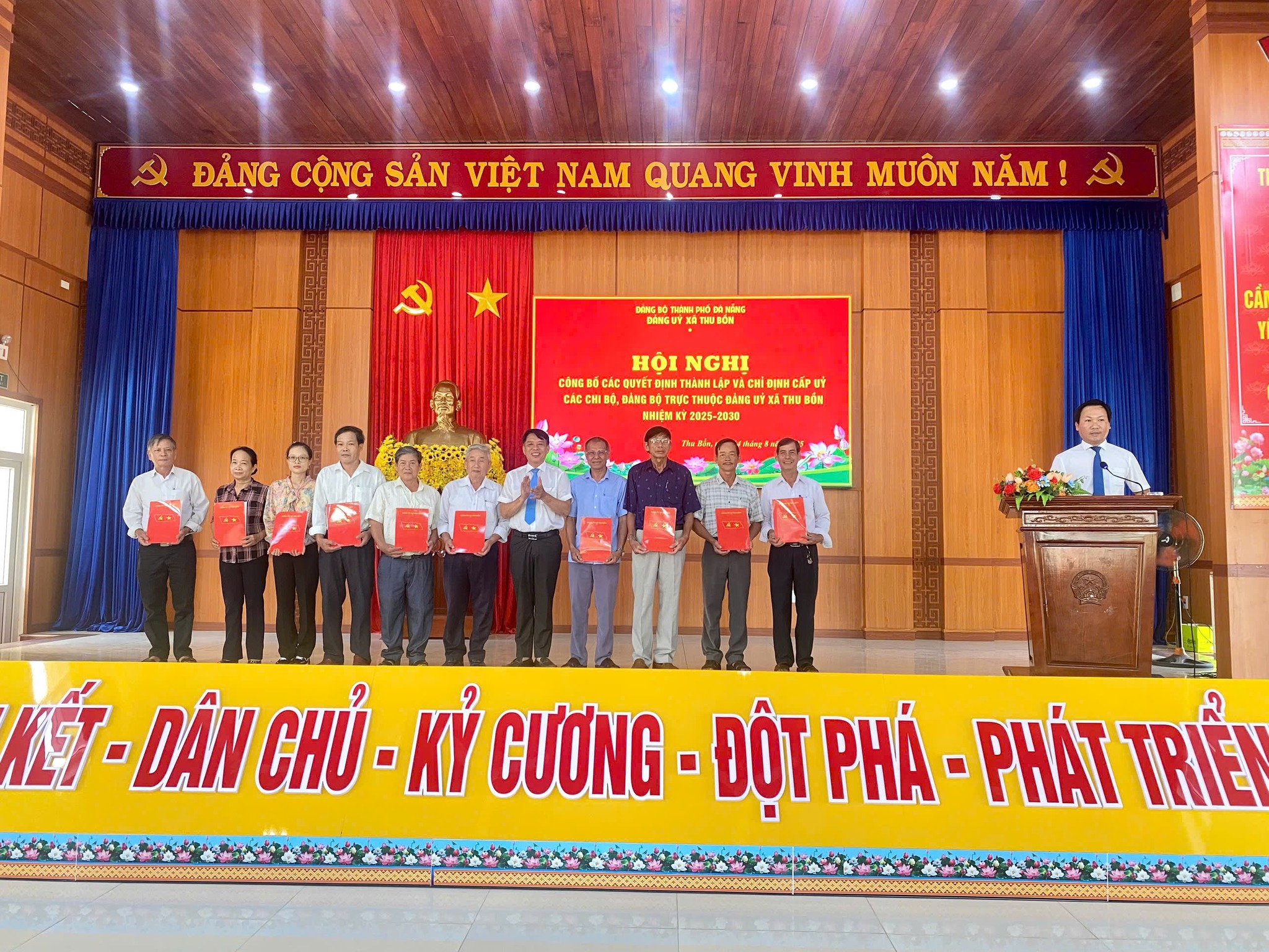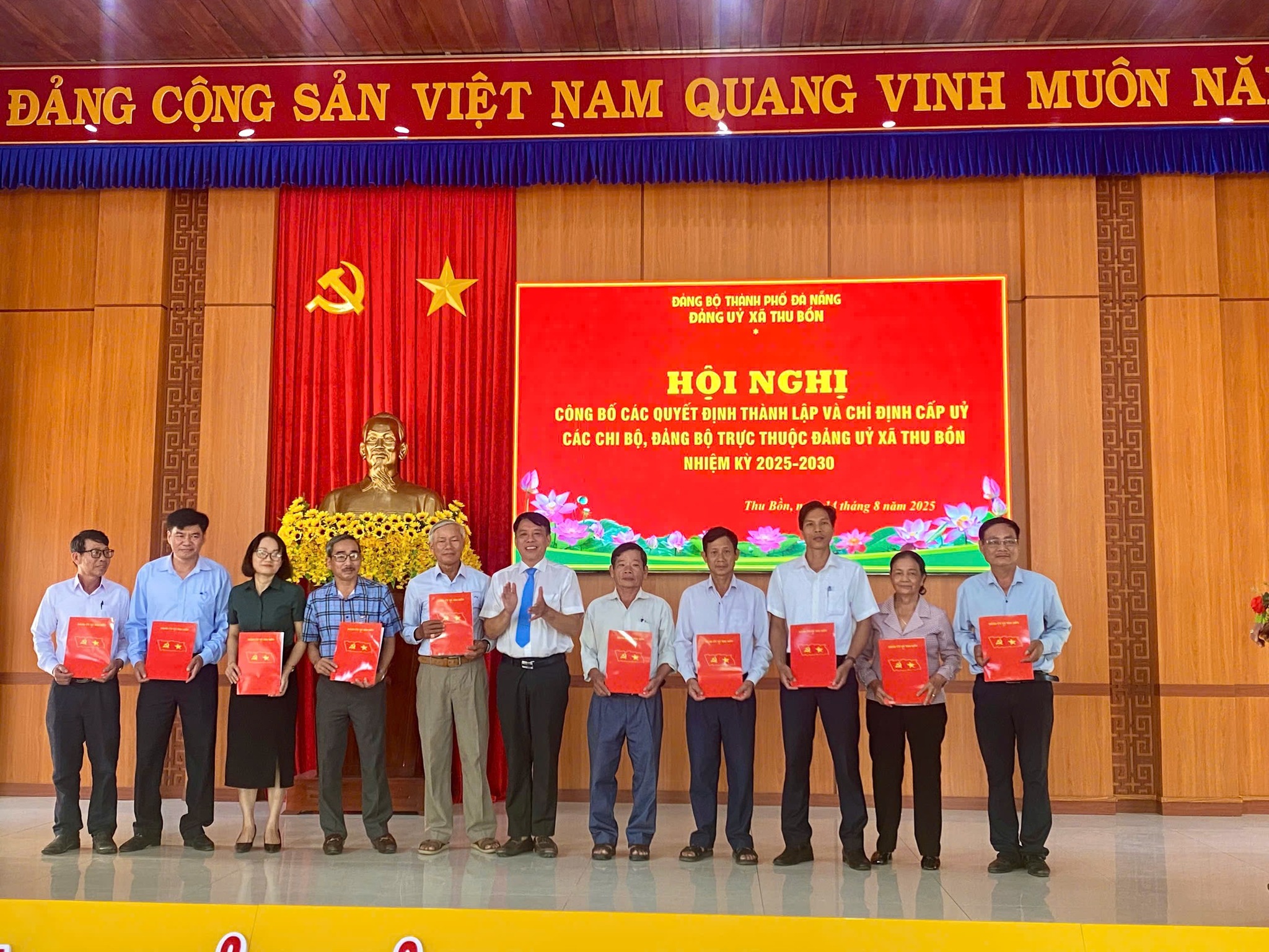 Sáng ngày 14/8/2025, Đảng ủy xã Thu Bồn đã tổ chức Hội nghị với các nội dung: Công bố các Quyết định thành lập và chỉ định Cấp ủy, Bí thư, Phó Bí thư các tổ chức Đảng trực thuộc Đảng ủy xã Thu Bồn; học tập, quán triệt, triển khai thực hiện các văn bản mới của Đảng, Nghị quyết Đại hội đại biểu Đảng bộ xã lần thứ I, nhiệm kỳ 2025 –2 030 và Chương trình hành động thực hiện Nghị quyết Đại hội đại biểu Đảng bộ xã.