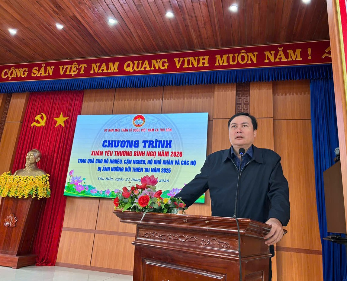 Hòa chung không khí đón chào Tết cổ truyền của dân tộc, ngày 21/01/2026, tại Hội trường xã Thu Bồn, Ủy ban Mặt trận Tổ quốc (MTTQ) Việt Nam xã đã tổ chức chương trình “Xuân yêu thương – Bính Ngọ năm 2026”. Đây là hoạt động thiết thực nhằm chăm lo cho các gia đình chính sách, hộ có hoàn cảnh khó khăn trên địa bàn xã nhân dịp năm mới.