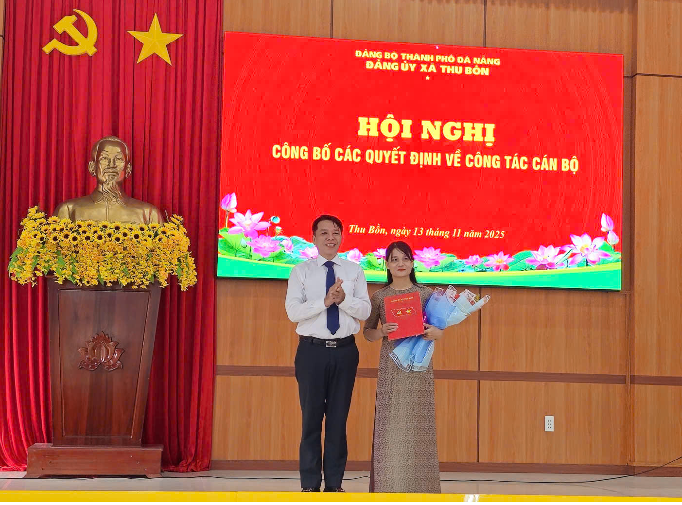 Công bố Quyết định của Đảng ủy xã Thu Bồn về việc bổ nhiệm giữ chức vụ Phó Trưởng Ban Xây dựng Đảng xã đối với đồng chí: