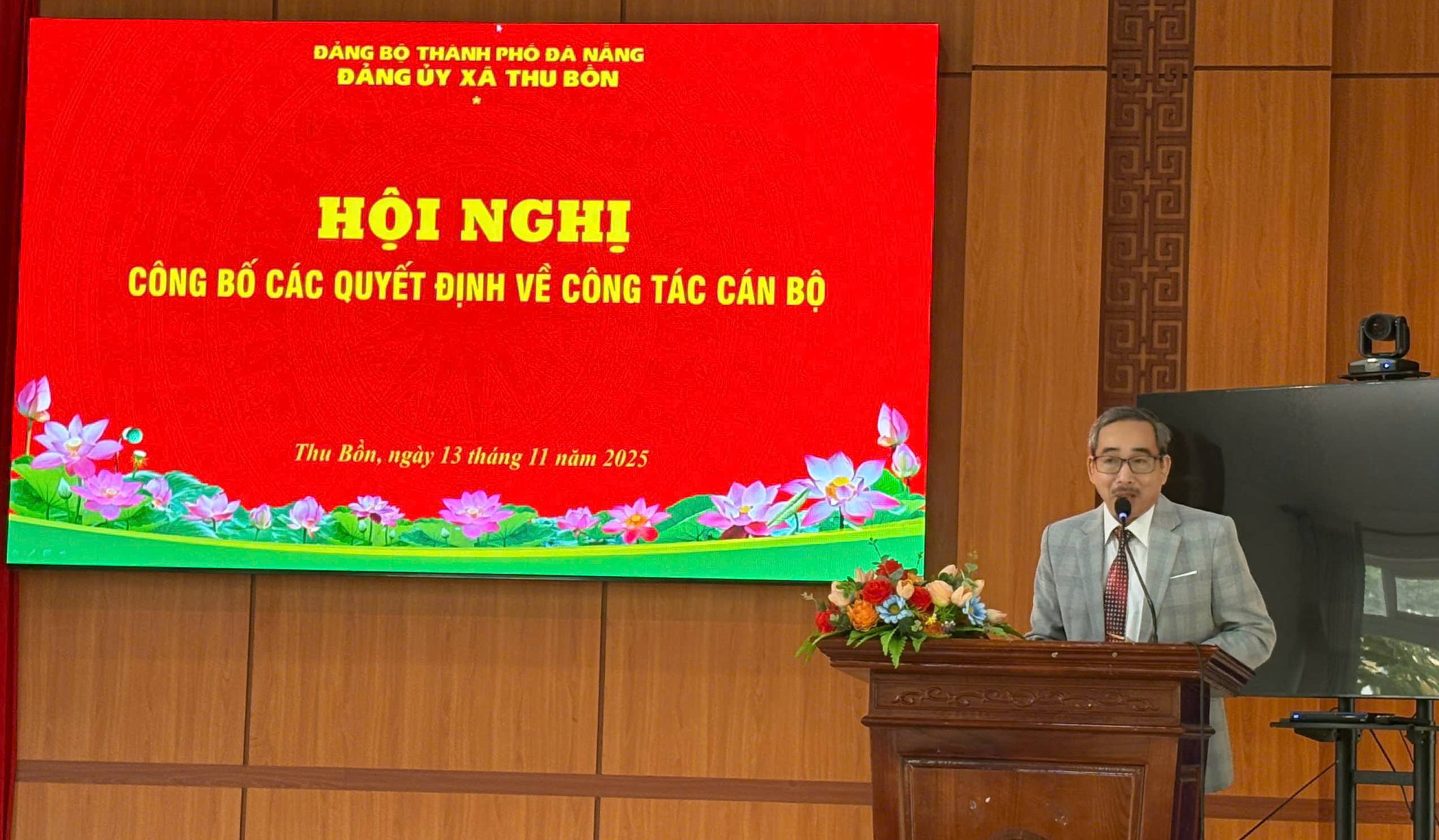 Sáng ngày 13/11/2025, Đảng ủy xã Thu Bồn đã long trọng tổ chức Hội nghị Công bố các Quyết định về công tác cán bộ, nhằm kiện toàn và bổ sung nhân sự chủ chốt, đáp ứng yêu cầu nhiệm vụ chính trị của địa phương trong giai đoạn mới.
