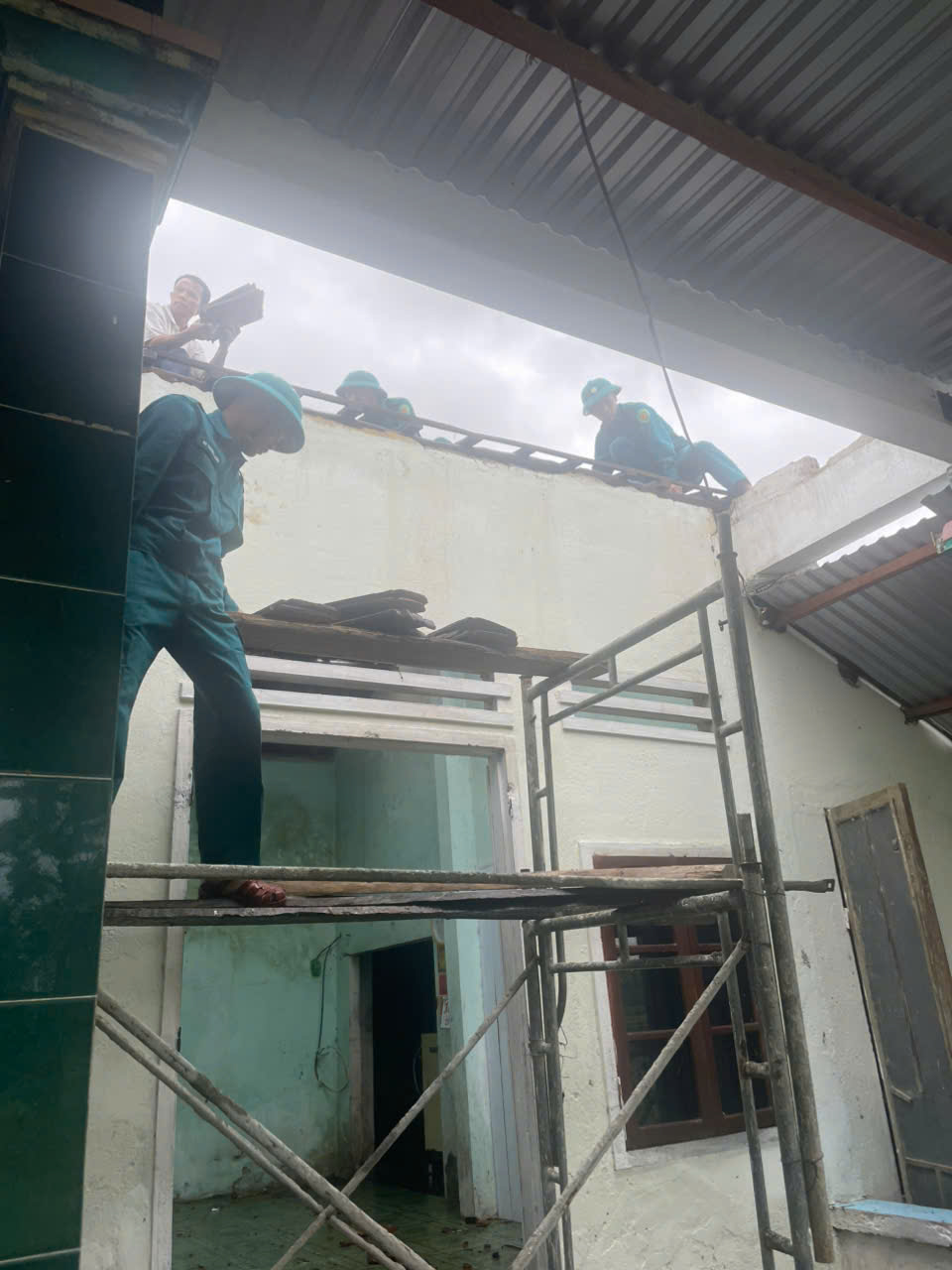 Toàn bộ mái ngói vỡ nát được thay bằng mái tôn, xà gồ thép được người dân và lực lượng dân quân đặt lại không chỉ che chắn căn nhà khỏi mưa gió mà còn lợp nên một tấm lòng đoàn kết, một niềm tin vững chắc vào tình làng nghĩa xóm và sự sẻ chia kịp thời.