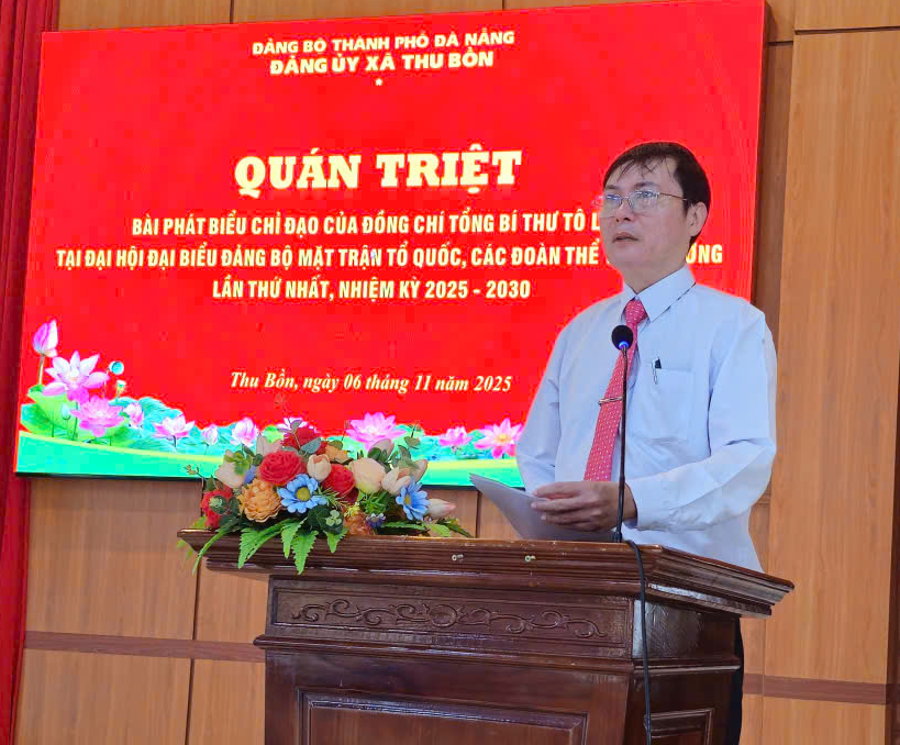 Ngay sau phần trao tặng Huy hiệu, Đảng ủy xã Thu Bồn đã tổ chức quán triệt nội dung Bài phát biểu của Đồng chí Tổng Bí thư Tô Lâm tại Đại hội đại biểu Đảng bộ Mặt trận Tổ quốc và các đoàn thể chính trị - xã hội Việt Nam lần thứ nhất, nhiệm kỳ 2025–2030.
