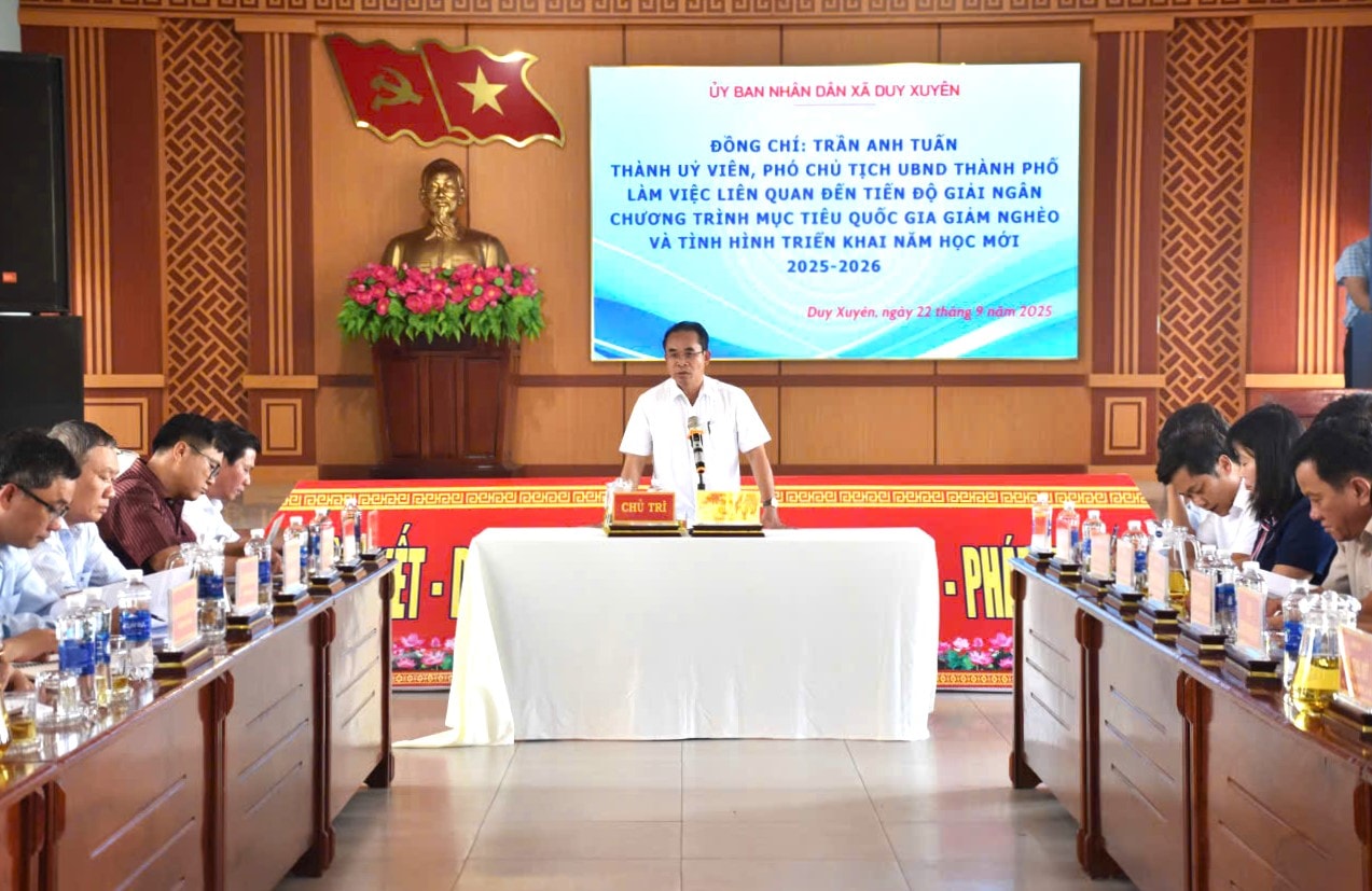 ĐNO - Chiều 22/9, Phó Chủ tịch UBND thành phố Đà Nẵng Trần Anh Tuấn có chuyến kiểm tra một số trường học về tình hình năm học mới 2025 - 2026 và làm việc với UBND xã Duy Xuyên về tiến độ giải ngân các chương trình mục tiêu quốc gia giảm nghèo.